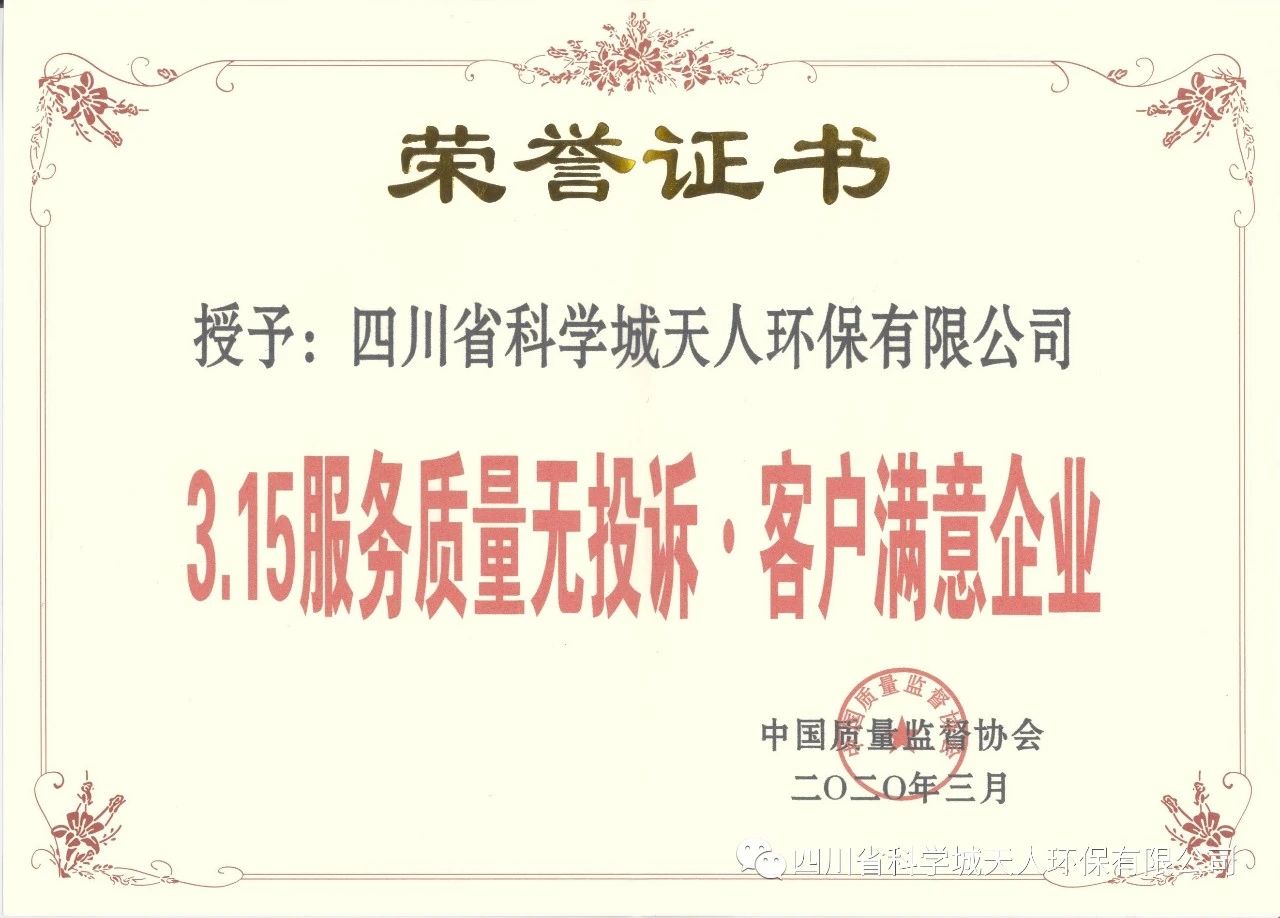 2020年3月15号,火狐电竞官网入口被中国质量监督协会评为“3.15服务质量无投诉,客户满意企业”