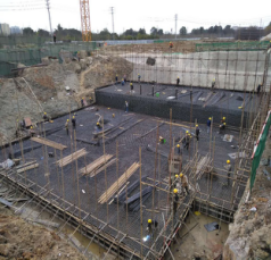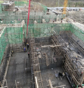 高效沉淀池池壁钢筋绑扎及消毒池上部建筑模板施工。