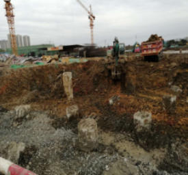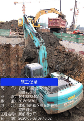 生化池、二沉池基坑土方开挖及生化池桩头破除作业。