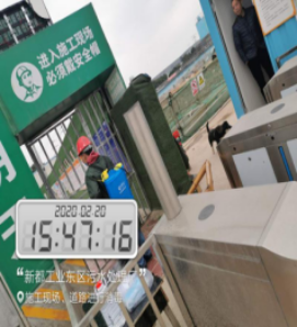 每天对进入施工现场人员进行信息登记和体温检测,进出通道进行定时多次消毒。